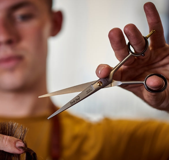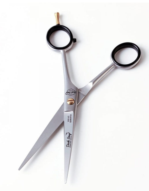 Dark Stag’s DS1 are pure barber scissors. One micro serrated blade ensures a perfect, trustworthy cut right to the tip. Heat treated stainless steel provides long lasting performance in this medium weight barbers scissor. An innovative German design screw system provides a smooth feel. Finger rest is removable. Available in 6 inch