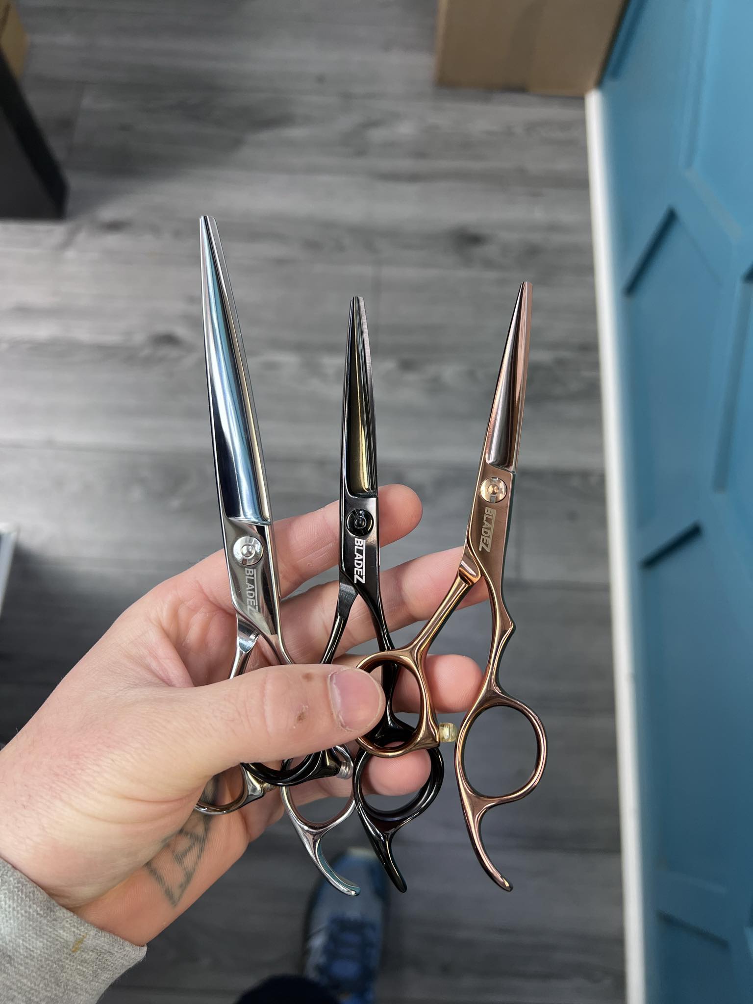 All Bladez scissors are hand made using traditional Japanese methods and fully forged from 440c stainless steel with hand honed convex edges for superior cutting.