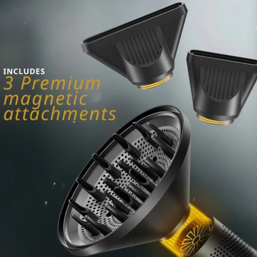 The Vanquish™ comes with three premium magnetic attachments which can be used for different styles. The standard nozzle, wide nozzle, and diffuser fit on the dryer magnetically, for safe styling and easy changeover.